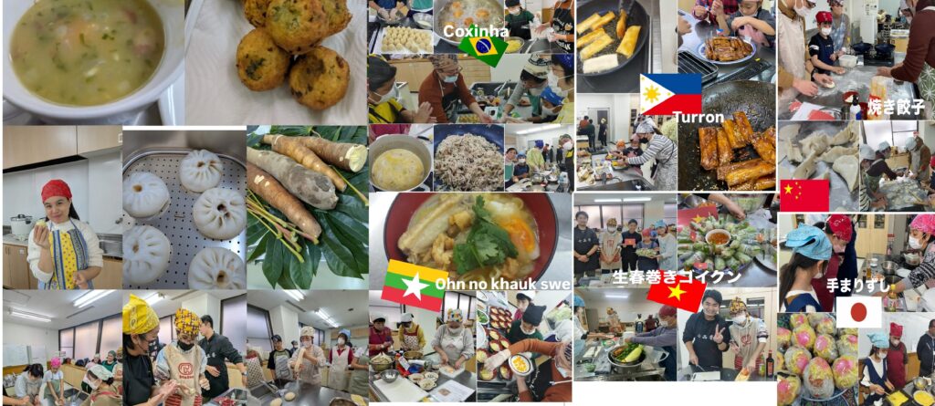 国際料理交流会 作り方を教えてくれるのは在住外国の方たち。毎回、普段味わえない母国の伝統料理を一緒に作りながらユニークな食材の話、食習慣などの話も楽しんでいます。